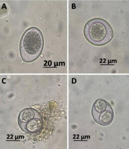 ↑ 上の写真は、猫のコクシジウムの写真です。
